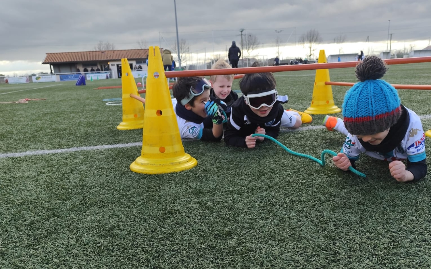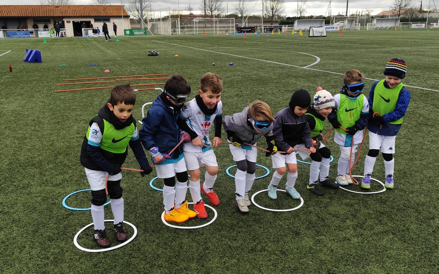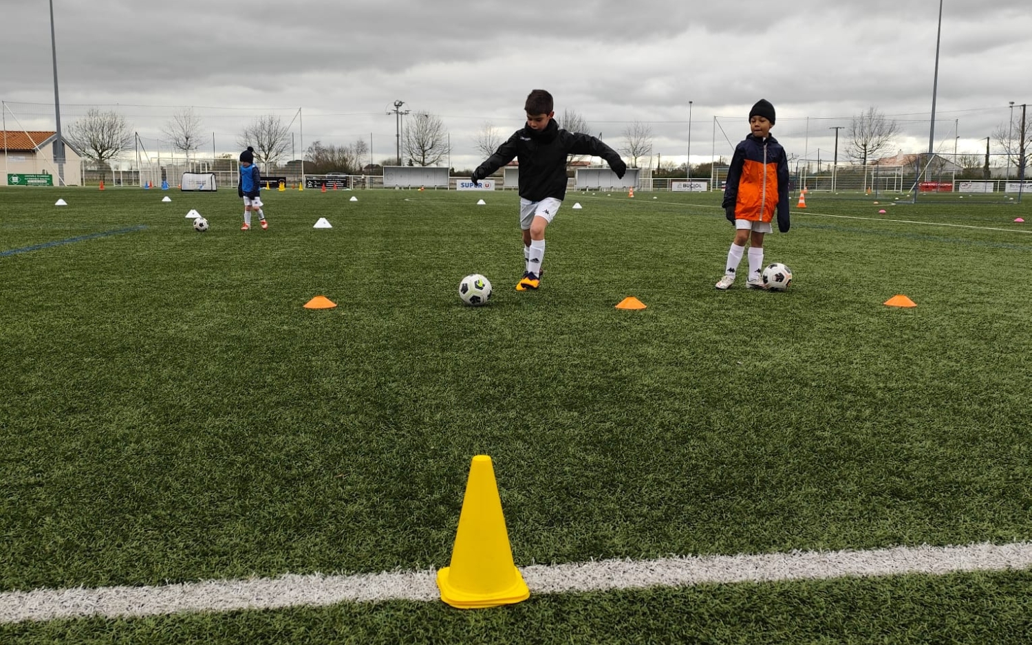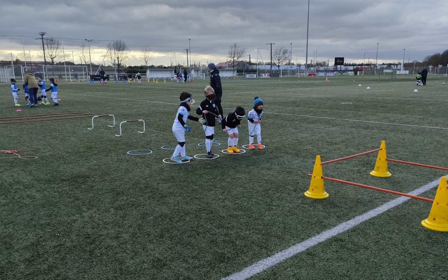 Répartis en 4 groupes de 4 joueurs par catégorie, nos jeunes footballeurs ont enchaîné des rotations de 12 minutes d’activité avec 3 minutes pour changer d’atelier.